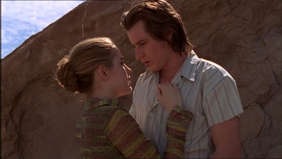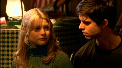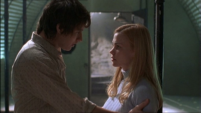 2.19 Vérité cachée (Baby, It's You)Maria nous fait un petit rappel de ce qui s'est passé récemment à RoswellLa mort d'Alex, Liz voulant prouver que c'était un meurtre par un ET et Max et Tess qui couchent ensemble... Après leur nuit d'amour, Max et Tess se rendent chez cette dernière mais Valenti les surprend, oblige Tess à aller dans sa chambre (rôle de père oblige !) et met Max à la porte. Maria et Liz, toutes deux d'accord pour dire qu'Alex n'est jamais allé en Suède, se mettent à la recherche de Leanna ainsi que de l'endroit où Alex a séjourné pendant près de 2 mois. Max et Tess se montrent ensemble en public et elle lui annonce qu'elle est enceinte. Kyle et Isa s'éclatent avec les pouvoirs d'Isa. Prise de tête supplémentaire entre Max et Liz qui était venue interroger Tess sur son pouvoir de manipuler les esprits... Kyle donne un alibi à Tess pour le soir de la mort d'Alex. Maria et Liz,ayant découvert qu'Alex était à Las Cruses, décident d'y aller . Maria le dit à Michael qui promet de ne rien dire à Max si elle promet de l'appeler si quelque chose ne va pas. Sur les Year Book (bouquin donné en fin d'année aux lycéens avec la photo de tous les élèves du lycée) de Max et Michael, à la place de leur photo, il y a une photo d'Extra-Terrestre (petite blague de Kyle et Isa). On apprend que le bébé de Tess grandi vite, les grossesses des ET durent seulement 1 mois... Maria et Liz, à Las Cruses découvrent que Alex s'est fait passer pour un certain Ray, qu'il passait son temps sur un ordi super puissant. Rien qu'en posant sa main sur le ventre de Tess, Max peut voir son bébé, c'est un garçon. |