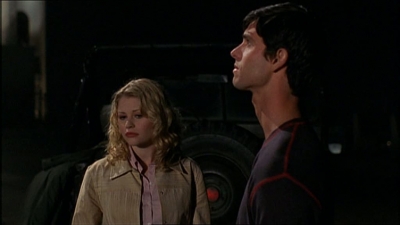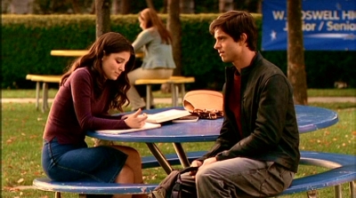 2.04 Eté 47 (Summer of '47)Isabel montre le Granilith à Max, Michael et Tess.Une fois encore, Max et Michael ne sont pas d’accord sur la conduite à tenir, Max refusant de sécher les cours pour s’en occuper en priorité. De retour au lycée, Michael, mécontent, envoie une fois de plus balader Maria puis se montre extrêmement désagréable avec Liz qui voulait parler à Max au sujet de Whitaker. Il est ensuite coincé par son professeur d’histoire qui lui impose de réaliser la biographie d’un vétéran de la seconde guerre mondiale :le capitaine Hal Carver. Bien obligé, Michael va interviewer le vieil homme qui s’avère être un témoin des événements survenus lors du crash de 1947. En écoutant son récit, Michael se prend au jeu et le visualise en distribuant les rôles des différents protagonistes de l’histoire à tout son entourage. En 1947, donc, Hal ( joué par Michael ) et Richie Dodie ( joué par Max ) arrivent avec un peu de retard sur le lieu du crash, jonché de débris fumants que des soldats ramassent et chargent dans un camion.