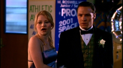 2.10 L'esprit de Noel (A Roswell Christmas Carol)C’est Noël à Roswell.Max et Michael sont en train d’acheter un sapin. Isabel qui veut à tout prix un Noël parfait (à tel point que Michael l’a surnommée la terreur des guirlandes : La Nazi de Noël en VO ) leur a fourni un diagramme très complet que Max s’efforce de suivre à la lettre. Michael doit aussi trouver un cadeau pour Maria, ce qui le laisse perplexe. Un accident tragique a lieu sous leur yeux. Un père de famille se fait renverser par un chauffard pour sauver sa fille... Max est pris entre le désir d’utiliser ses pouvoirs pour le sauver et la peur des conséquences mais Michael l’empêche d’intervenir. Le lendemain, alors qu’Isabel continue sa préparation despotique du Noël parfait, Max, tiraillé par le remord, voit apparaître le fantôme de l’homme qui lui reproche de l’avoir laissé mourir... Michael essaye de négocier avec Maria pour avoir quelques jours de plus avant de lui offrir son cadeau mais elle refuse tout net. Brody, triste et préoccupé, annonce à Maria qu’il sera absent pendant les fêtes et qu’elle n’aura donc pas à lui apporter son repas.