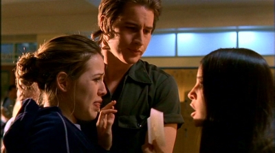 De retour à l’école, Michael, radouci, s’excuse auprès de Liz qui est ravie du changement. Il amène ensuite Maria avec lui pour lui montrer le Granilith. |
