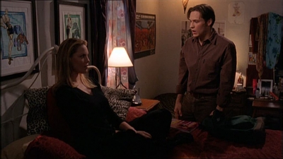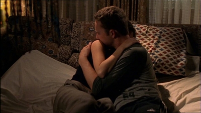 Liz toque à la porte de chez Sean qui est très surpris. Dans un accès de folie, Liz l’embrasse. Ils sont couchés sur son lit tout en s’embrassant, Sean voit bien qu’il y a quelque chose de pas normal dans son comportement et lui demande ce qui se passe.
