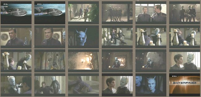 Vox SolaJanvier 2152Les "Kreetassiens" se vengent d'un affront en envoyant un organisme extraterrestre prendre possession du hangar aux nacelles où il se met à grandir et menacer l'équipage. L'organisme capture plusieurs membres d'équipage, y compris Archer et Trip, et les enferment dans des cocons sur sa toile, vidant petit à petit leurs corps pour se nourrir. |