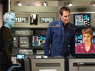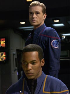 Personnages principauxScott Bakula (Capitaine Jonathan Archer)Connor Trinneer (Commandant Charles 'Trip' Tucker III) Jolene Blalock (Sous-commandant T'Pol) Dominic Keating (Lieutenant Malcolm Reed) Anthony Montgomery (Enseigne Travis Mayweather) Linda Park (Enseigne Hoshi Sato) John Billingsley (Docteur Phlox) |