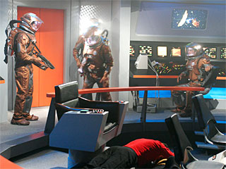 Sur l'écran principal du vaisseau, la Terre semble inchangée et l'équipage se demande à quelle époque il a été ramené... |