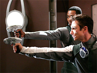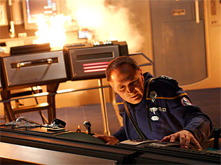 Peu après, T'Pol essaie de faire téléporter Mayweather et Tucker, mais l'opération est impossible : l'explosion de la navette provoque trop d'interférences. |