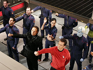 T'Pol ordonne de tirer sur la navette, qui, touchée, doit se poser en catastrophe.