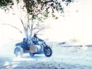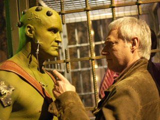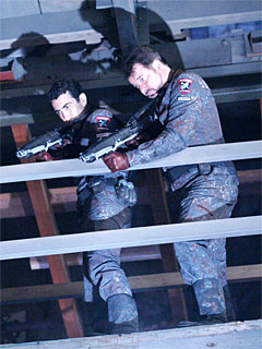 Sur place, un alien en uniforme, Vosk, montre un film de de soldats tirant avec de fusils à plasma sur des chars. |